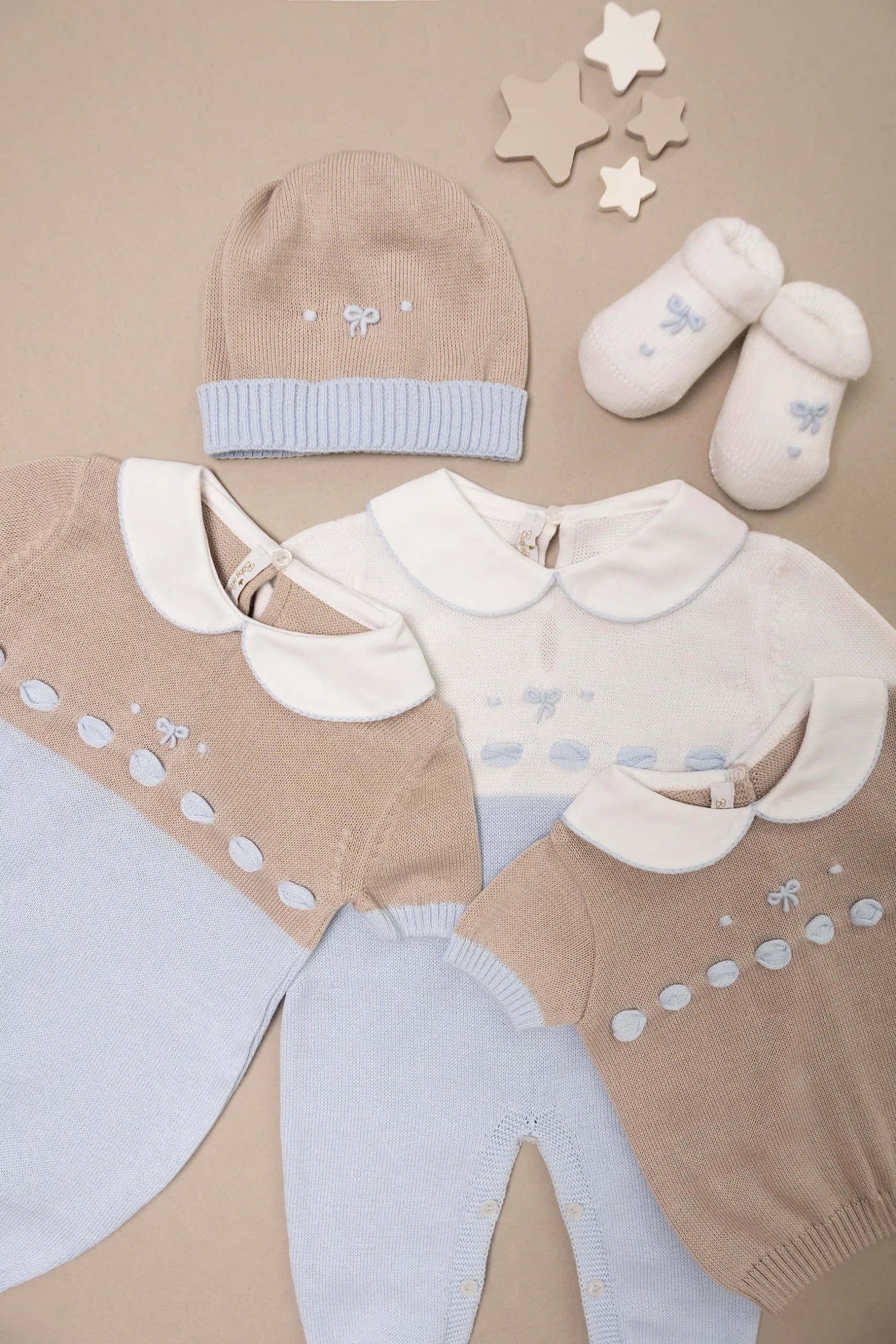 I capi realizzati con l’accortezza di sempre, sono impreziositi da piccoli ricami a mano, nodini e pois, delicati e distintivi dell’inconfondibile stile Baby Lord. Perfetto per vestire con eleganza, ogni dettaglio è pensato e realizzato con cura dalle mani preziose delle nostre magliaie.